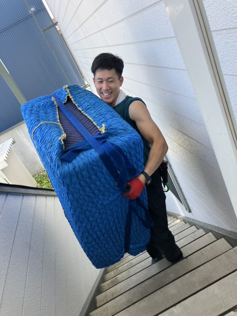 もちろん、ベッドマットはマットレスカバー(無料)を使って梱包して運びますので汚れたりしないで運びます。