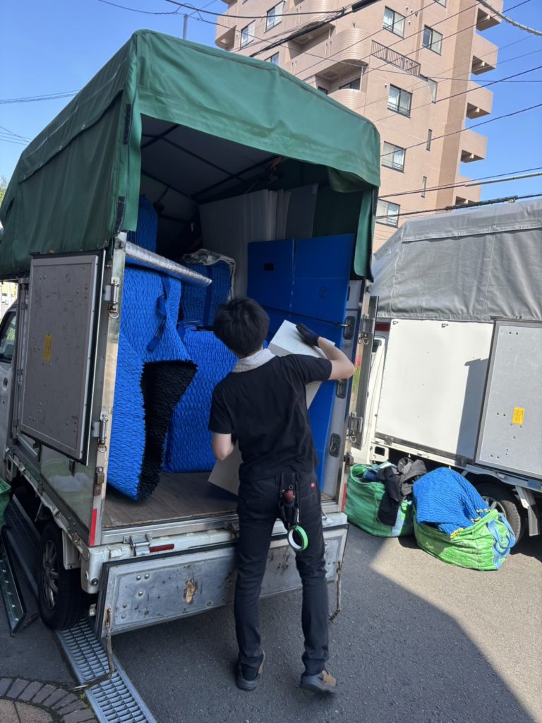 旭川市までの距離だと1~2回程度停車し、ベルトの緩みと梱包状態をチェックします。